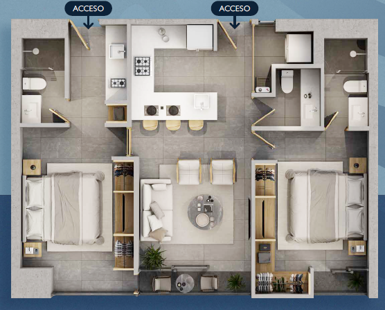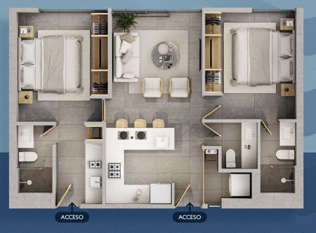 Departamentos en Lock Off Split System, donde te permite dividir tu departamento y maximizar tu inversión.